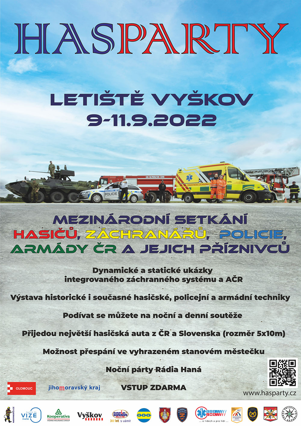 - Ukázky činnosti integrovaného záchranného systému (hasičů, záchrannou službou, policií v akci a přijede i armáda České republiky).
